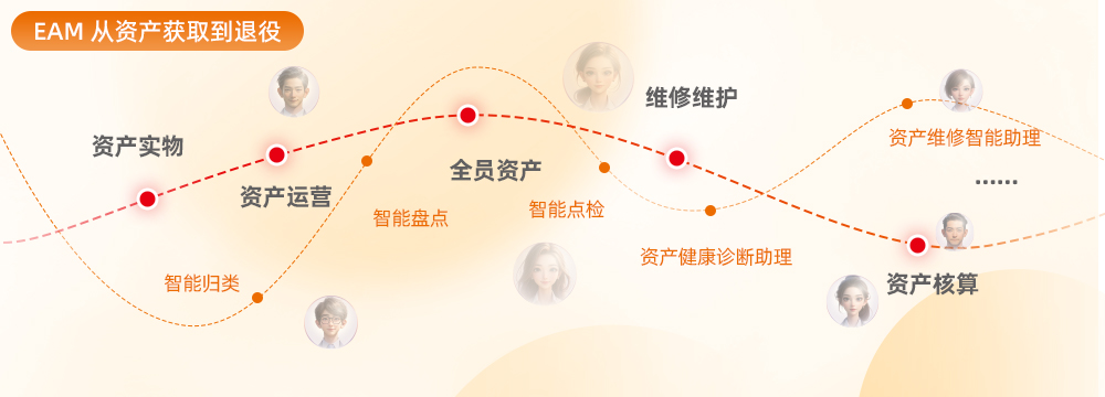 以資產為核心,實現了從期初資產獲取到最終資產報廢處置的全生命周期精益化管理,覆蓋了資產實物管理、資產運營、全員資產、設備與維修維護以及報廢與處置五大業務場景,破解傳統資產管理的數據分散、標準不規范、作業難監管、設備可靠性低,數據決策難的痛點。